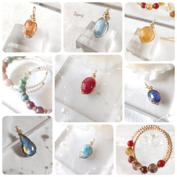 ハンドメイド 天然石ワイヤーラップジュエリーとレジンアクセサリー