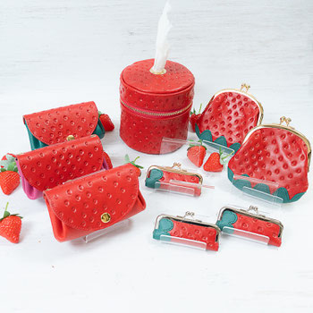写真印刷以外では、イチゴやメロンを再現した革、オリジナルのエナメルレザーなど個性的な革を使った商品も作っております。