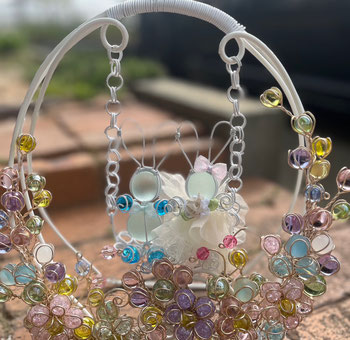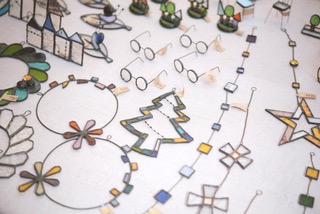 北米を旅する中で出会った、個性的で美しい素材をアクセサリーに仕立てています。手作業で生み出されたガラスドロップを、ジュエリーワイヤーで一点一点手で編み込んだ、繊細で自由な造形の一点物のアクセサリーが人気です。