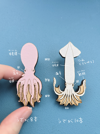 "色を塗った板をパーツ別に切り、組み合わせて作る木製ブローチを主に制作しています。