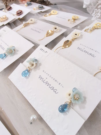 "耳飾り屋さんmimoaは粘土のお花のアクセサリー屋さんです。
