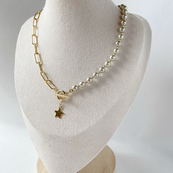 代表作のアシンメトリーネックレスはモチーフを選べたり、いろんな色のパールを選んでお気に入りのアクセサリーをお作りいたします。